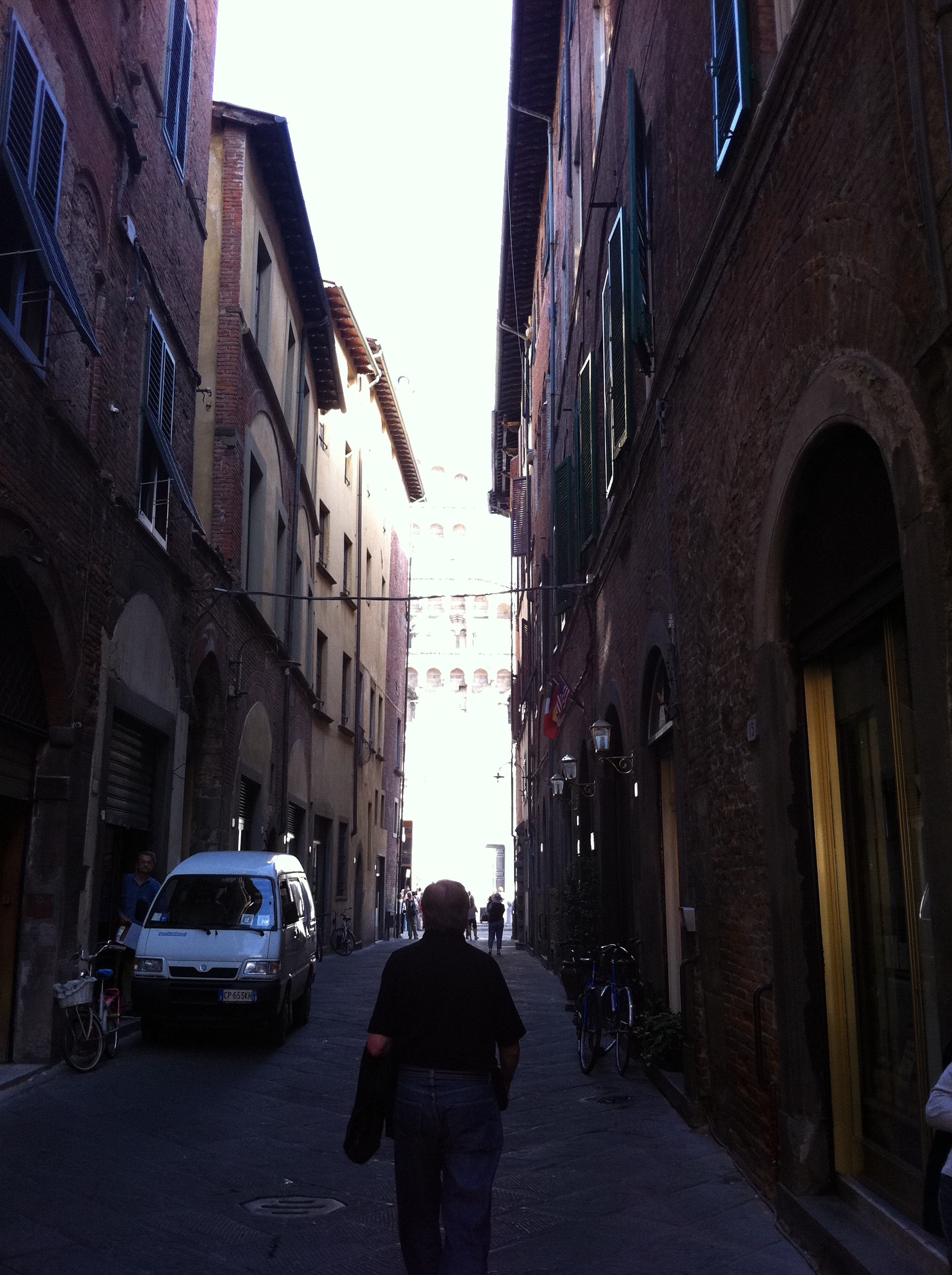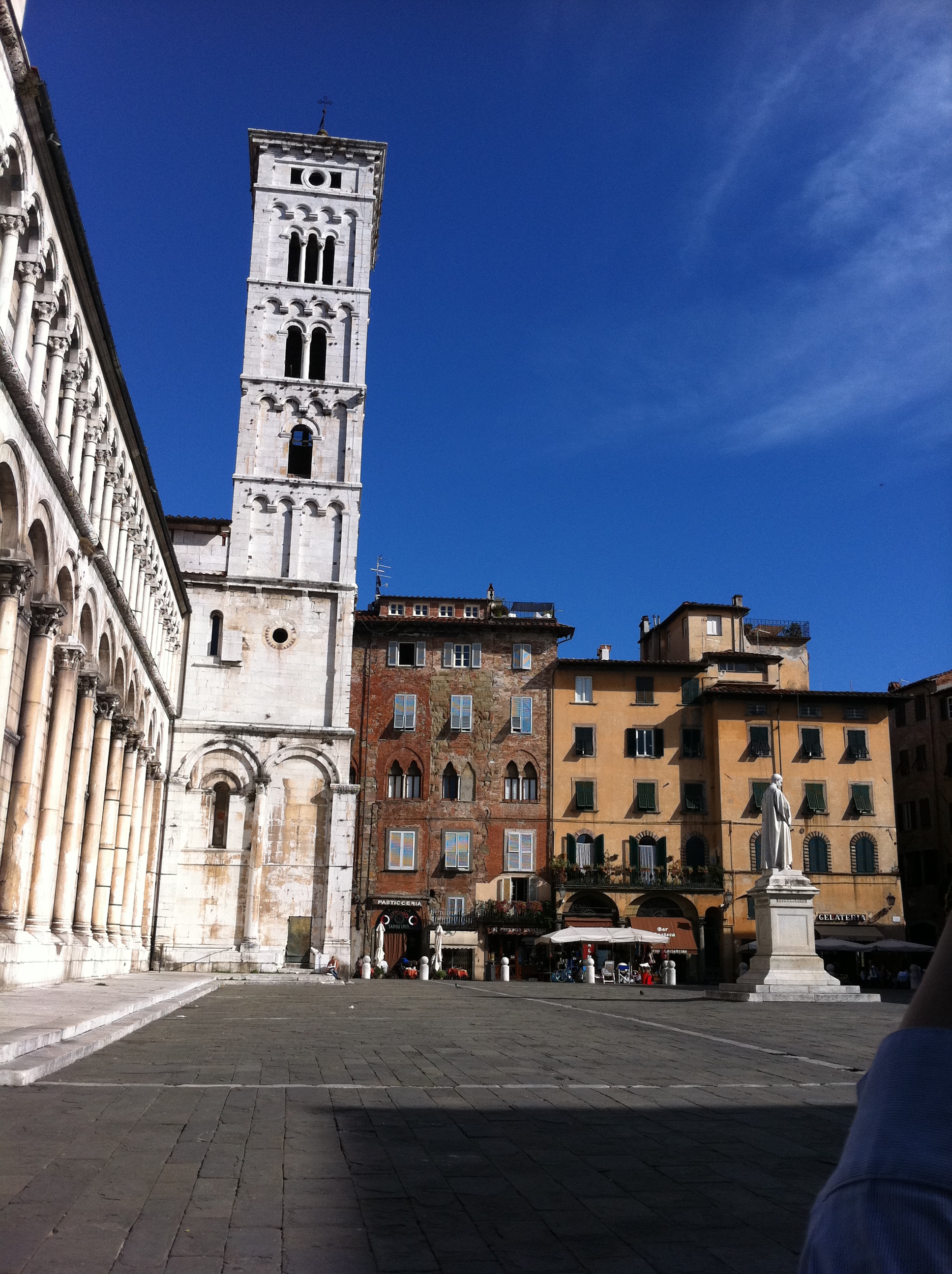 Lucca se divide em duas — a velha e a nova. Obviamente, a “veccia” é a mais interessante. Embora, historicamente, seja uma comunidade pacífica, ela é toda fortificada, envolta por um muro contínuo que, hoje, divide a cidade antiga da nova. Patrimônio histórico da humanidade, hoje, essa fortificação possibilita que moradores e visitantes pratiquem corrida, passeiem com cachorros e brinquem com as crianças sobre sua estrutura. A sombra projetada à tarde, é um convite para o descanso nos dias quentes.